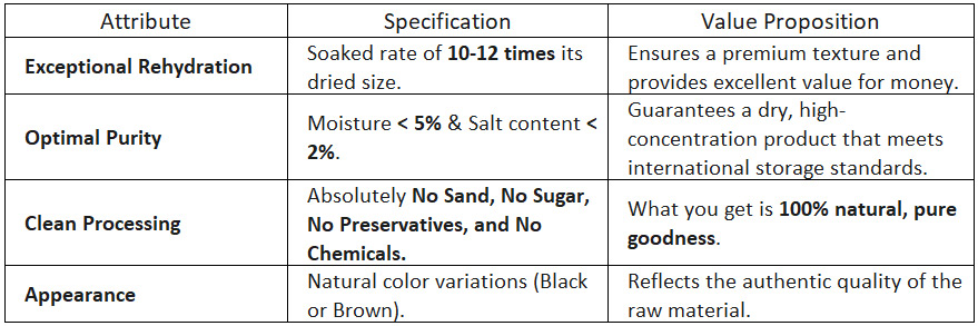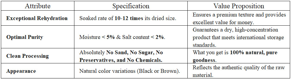Experience the gold standard in marine nutrition with our Dried Actinopyga lecanora Sea Cucumber. Sourced from the pristine, unpolluted waters of North Sumatra, our product is meticulously processed and packaged in Yogyakarta, Indonesia. This is a truly Green Product, guaranteed to be free from harmful substances and perfectly suited for global trade.