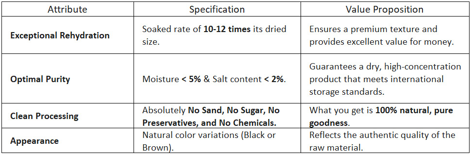 Experience the gold standard in marine nutrition with our Dried Holothuria atra Sea Cucumber. Sourced from the pristine, unpolluted waters of North Sumatra, our product is meticulously processed and packaged in Yogyakarta, Indonesia. This is a truly Green Product, guaranteed to be free from harmful substances and perfectly suited for global trade.