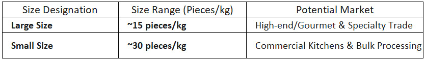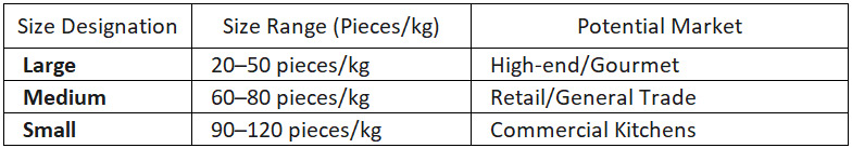 We offer a range of sizes to meet your specific market or culinary requirements: