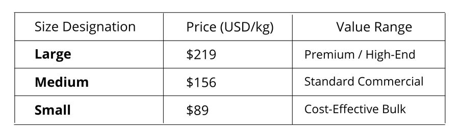 Large | 20–50 pieces/kg | High-end/Gourmet |